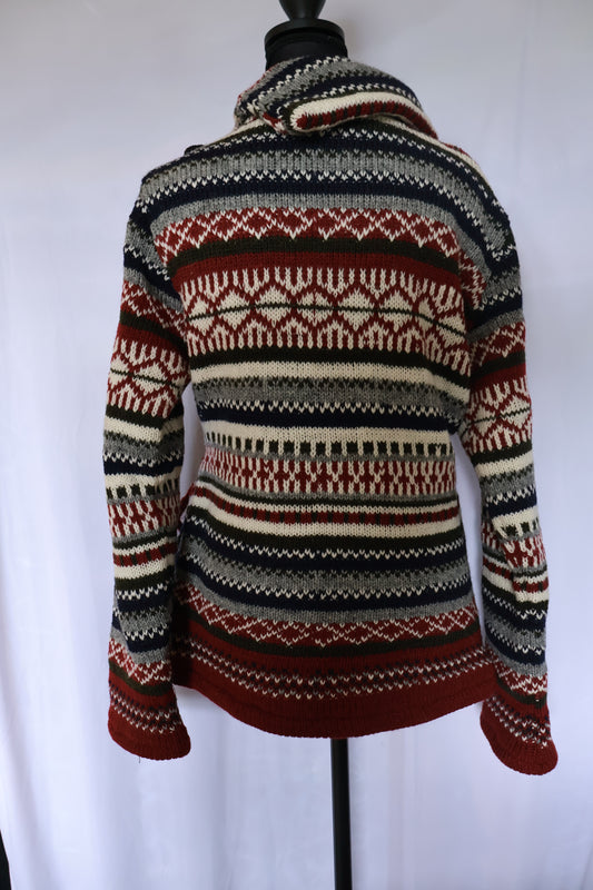 Asymmetric Wool Sweater - Fleece Lined - Color Blocked Edge