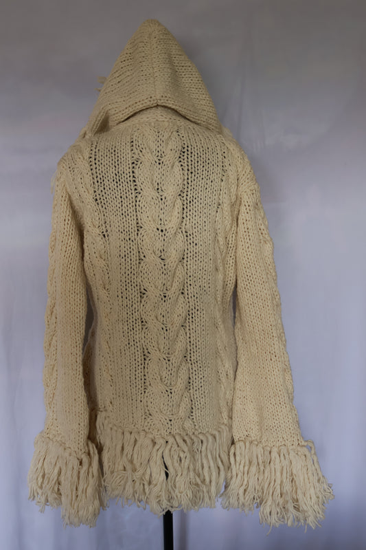 Asymmetric Wool Sweater with Side Tie - Fleece Lined