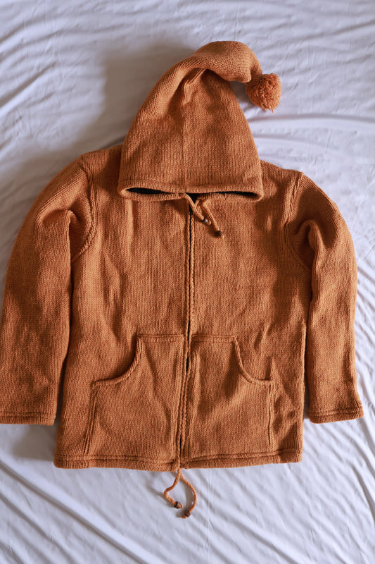 Wool Fleece Lined Jacket - Solid Color - Long Hood